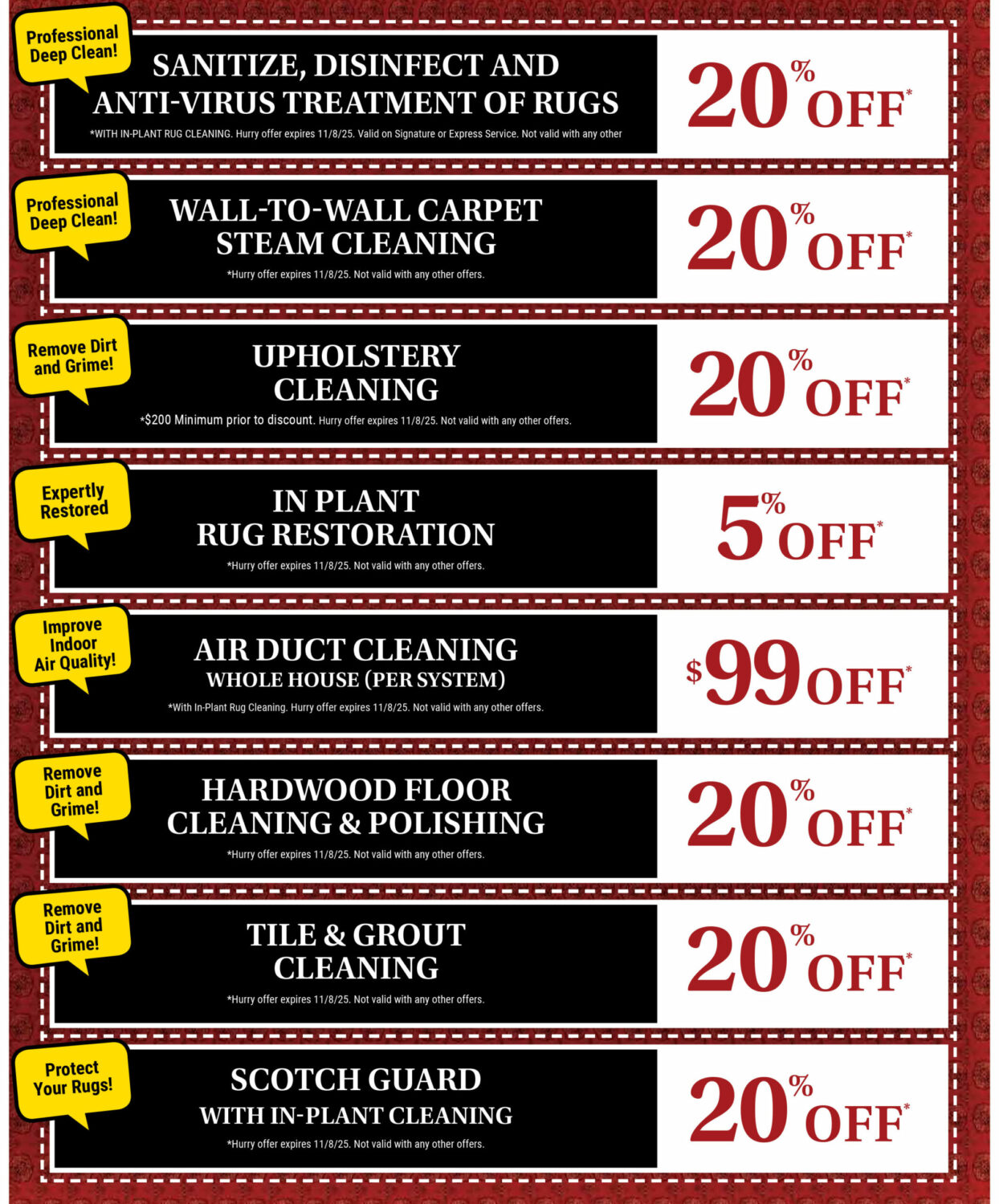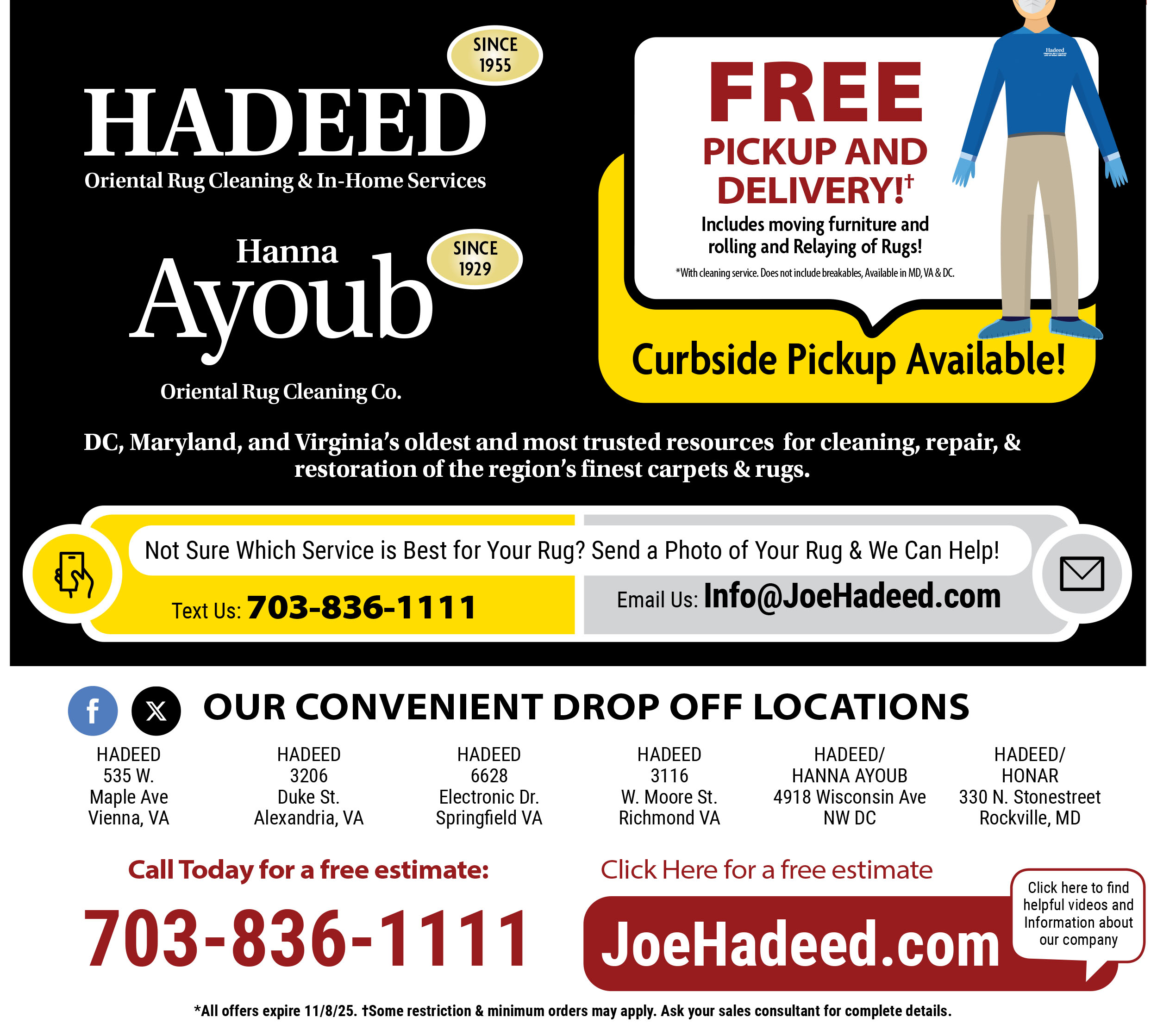 Only a few days left to take advantage of our October cleaning specials! Get your home holiday-ready with fresh, spotless rugs and carpets. Let the Hadeed Carpet cleaning experts bring your rugs back to life—schedule your service today!